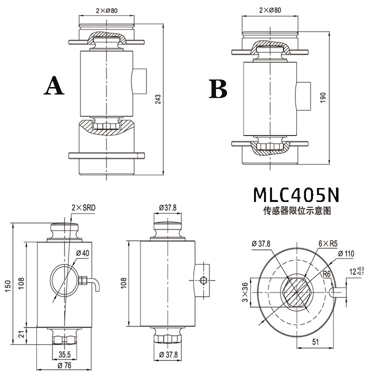 Dimension: 85*178.8mmMLC405N Column Type Truck Scale Load Cell | 10-50T High Precision Weighbridge Load Cell
